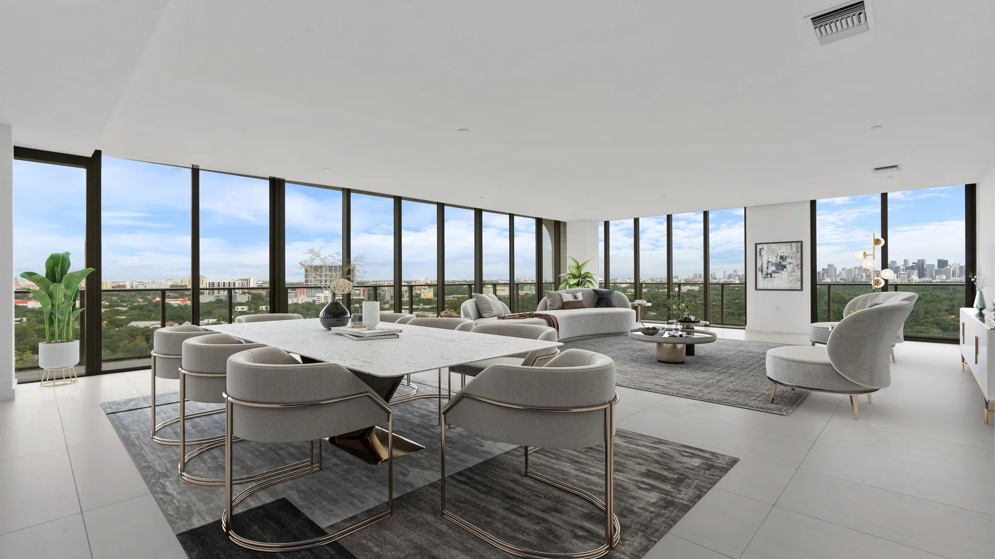 | Brickell | Young professionals, investors | Living room, bedroom, balcony | Contemporary, minimal | City views, smart home props, bar cart |